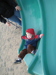 For the first time ever at Grandma's house I made the journey to the top of the hill and ran around at the four corners. Dad had to do a suicidal climb uphill with me in my backpack to get there, but it was all worth it in the end. I also spent some time with my favorite thing at Grandma's.....The Golf Cart. You also might notice I finally recieved a haircut this week! Still have some curls left, but at least I can see now.